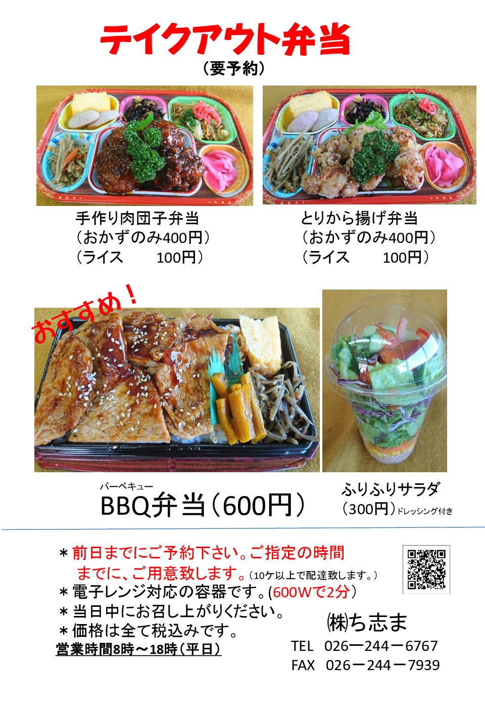 テイクアウト始めました。 是非、ご利用下さい!